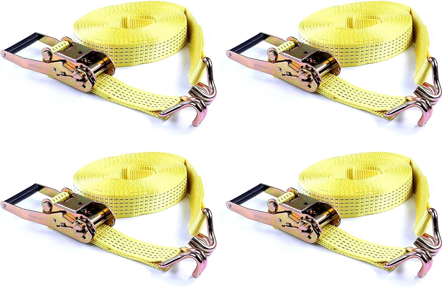 • Lot de 4 sangles jaunes avec cliquet en acier renforcé